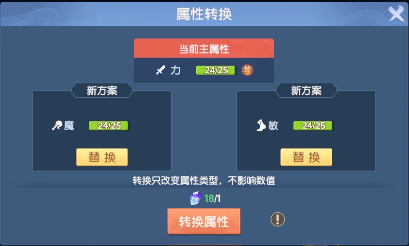 此外,神兵洗炼还支持主属性转换,如主属性力,可以转换成其他相同数值的主属性!