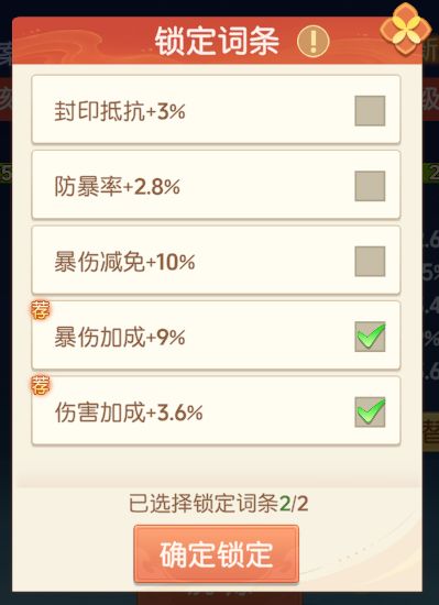 之后可在选择锁定词条进行洗炼,下次洗炼必定保留神兵主属性以及锁定的2~3个词条。
