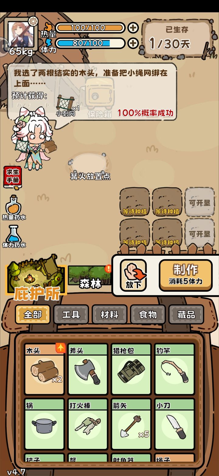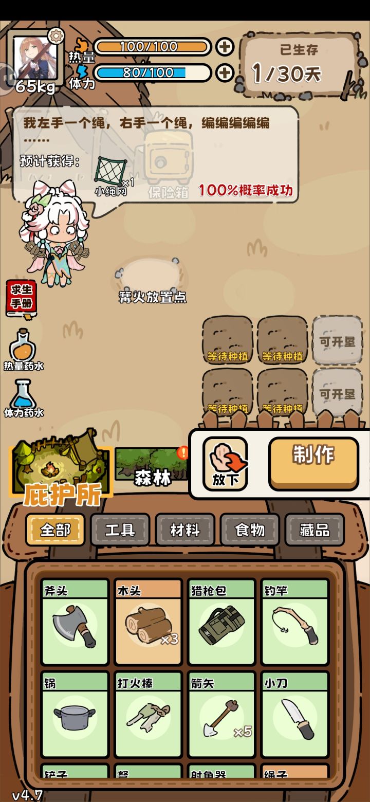 两个绳子合成小绳网,小绳网加木头合成小刺网,自己摸索出来的
