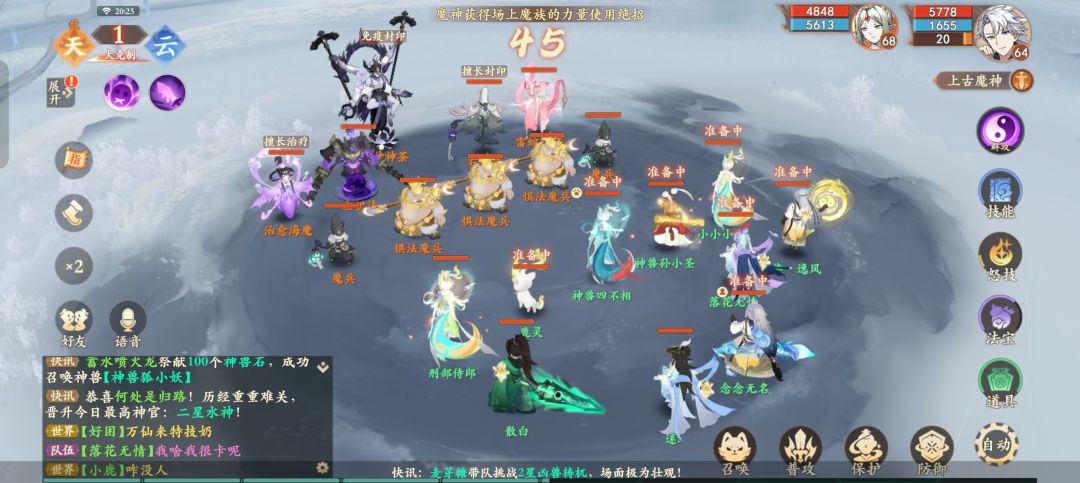 ——其次,打完护法之后记得在魔神界面配置心法,大BOSS用天阵,己方最好可以云阵打阵法大克制。