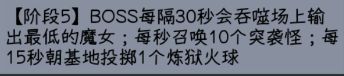 如不能打到阶段5,大概率也就只有20多30级,不会触发boss吃魔女的阶段5机制,拿一个穿透不理分身直接集火boss,并注意清理召唤出的小怪。也可以考虑常规共鸣打法,但个人小号测试第一个还是选超魔伤害更高。