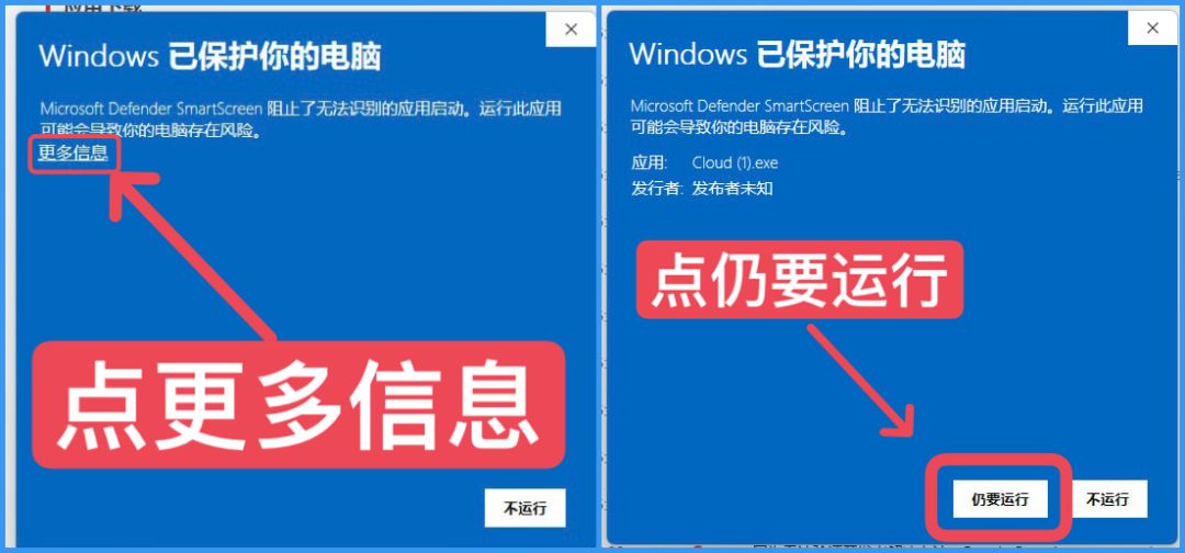 大家好,这里是午夜游民~有部分小伙伴在下载exe并且运行时会遇到windows拦截弹窗的问题,我们的游戏是无毒无害的(否则也不会通过比赛审核),只需要按照图片操作点击更多信息并且运行即可,发生这个的原因是因为我们的exe文件由于比赛上传仓促没有进行签名认证,很抱歉给大家带来不好的体验。