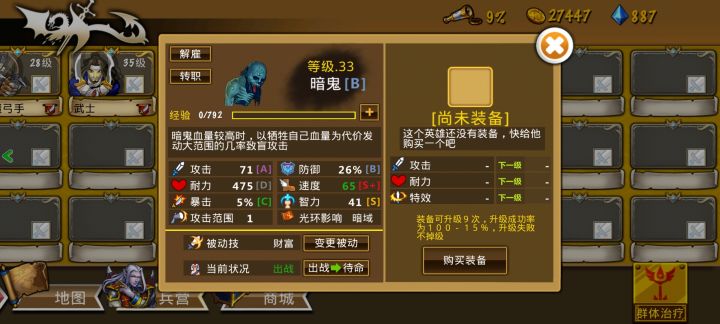 过5图后,团长基本就满级了。这时候可以去商城180000金币买B级英雄,可以刷2只暗鬼和几只黑骑士。