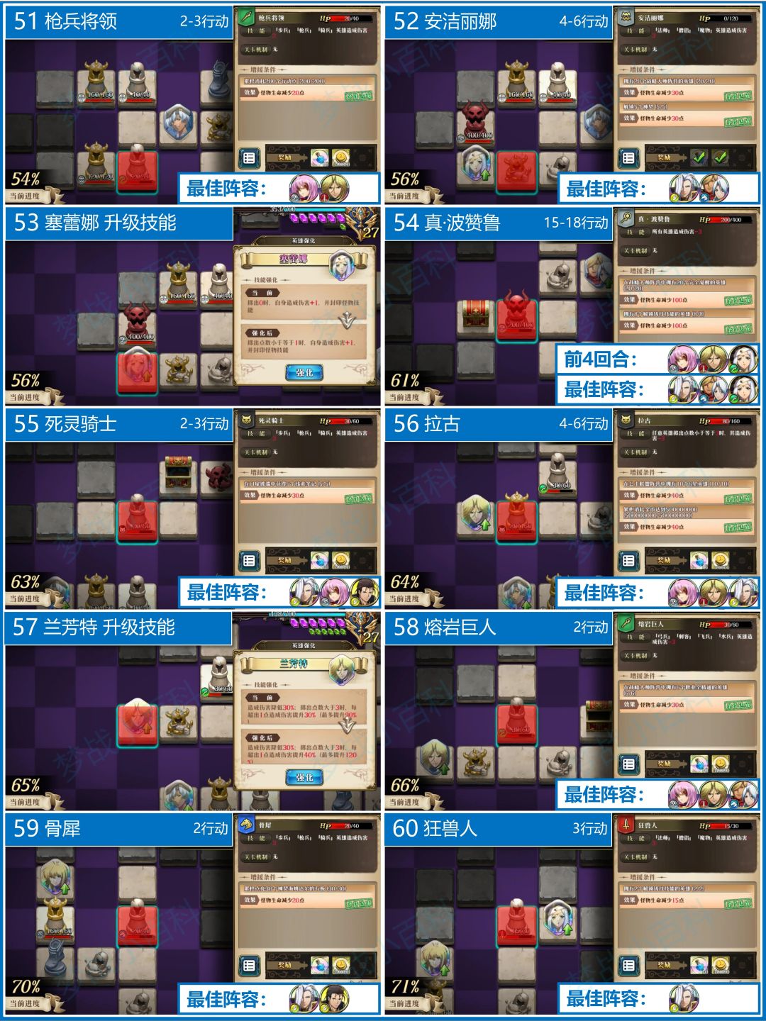 真·波赞鲁(54),所有人伤害-3,需要塞蕾娜封印,在上谜骑和兰芳特(2号位)来打输出。第5次换元帅+蕾拉。