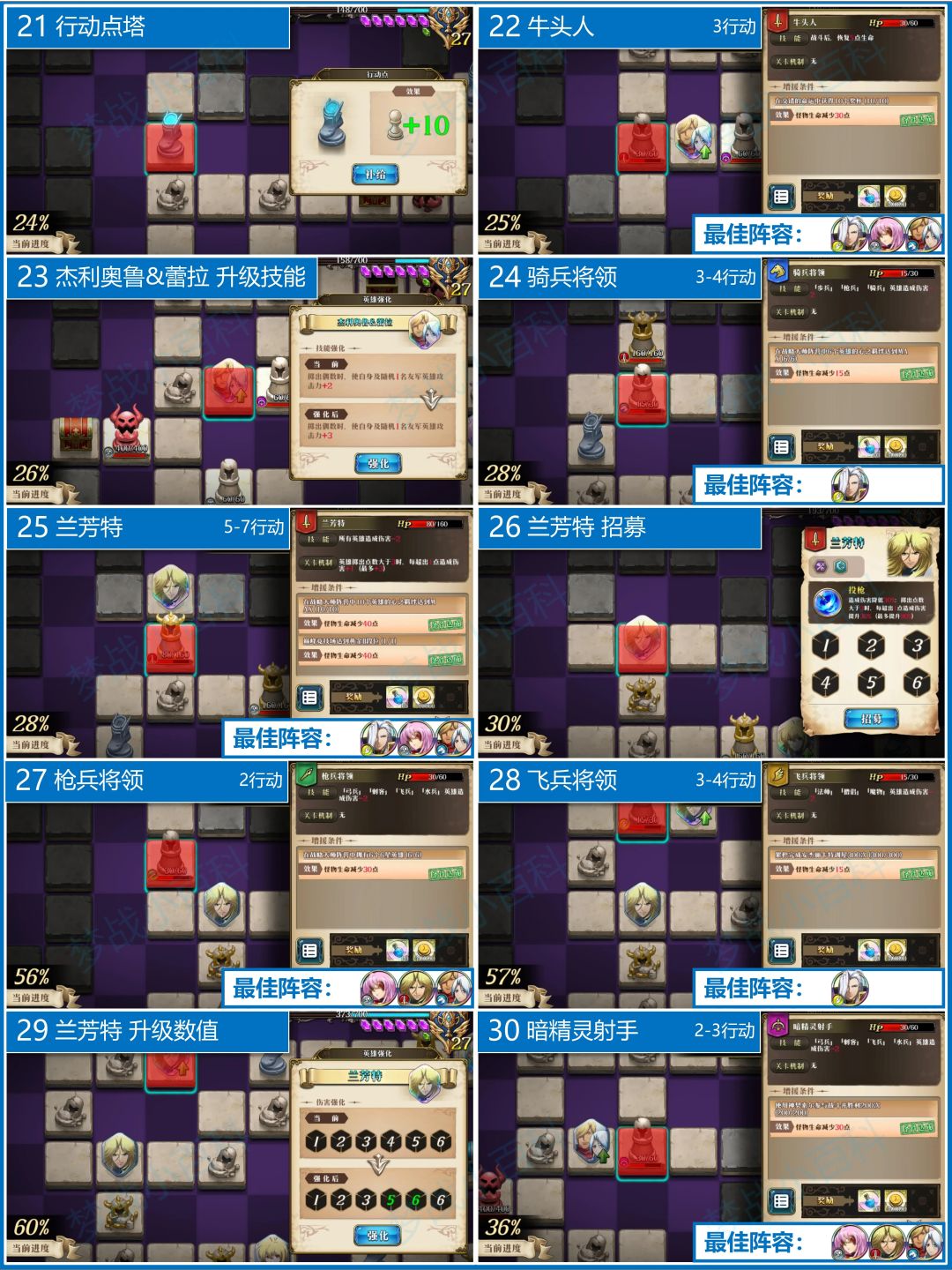 古罗布(70),战后回20点血。需要塞蕾娜来封印。然后谜骑和兰芳特(2号位)来打输出。第4回合换元帅+蕾蒂西亚打输出,更稳定。