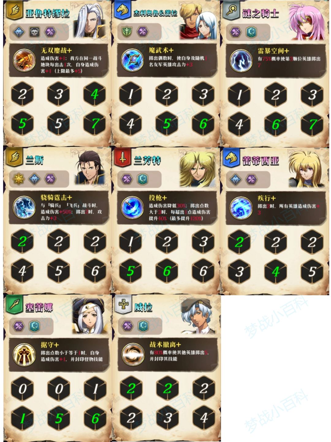兰斯打骑兵飞兵有增伤。蕾蒂西亚有一半概率全体加伤害,都和原英雄一样。