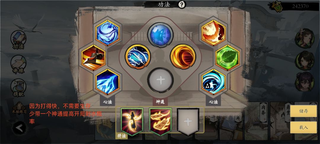 一般默认海月流,前期没神识的话,带红圈的四个就行