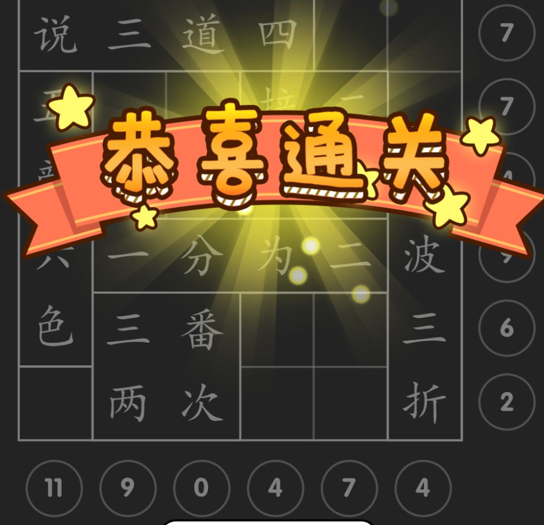 第七关:根据成语,第一排横向分别是“五千二三”,最后一列竖向是“三万千”,先调横向,再调竖向