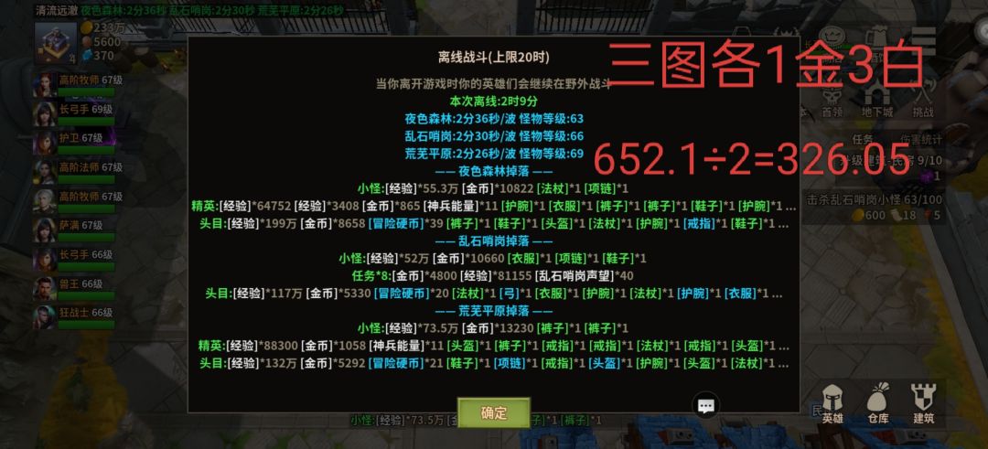 图中显示计算是一小时的收益还有装置搭配,