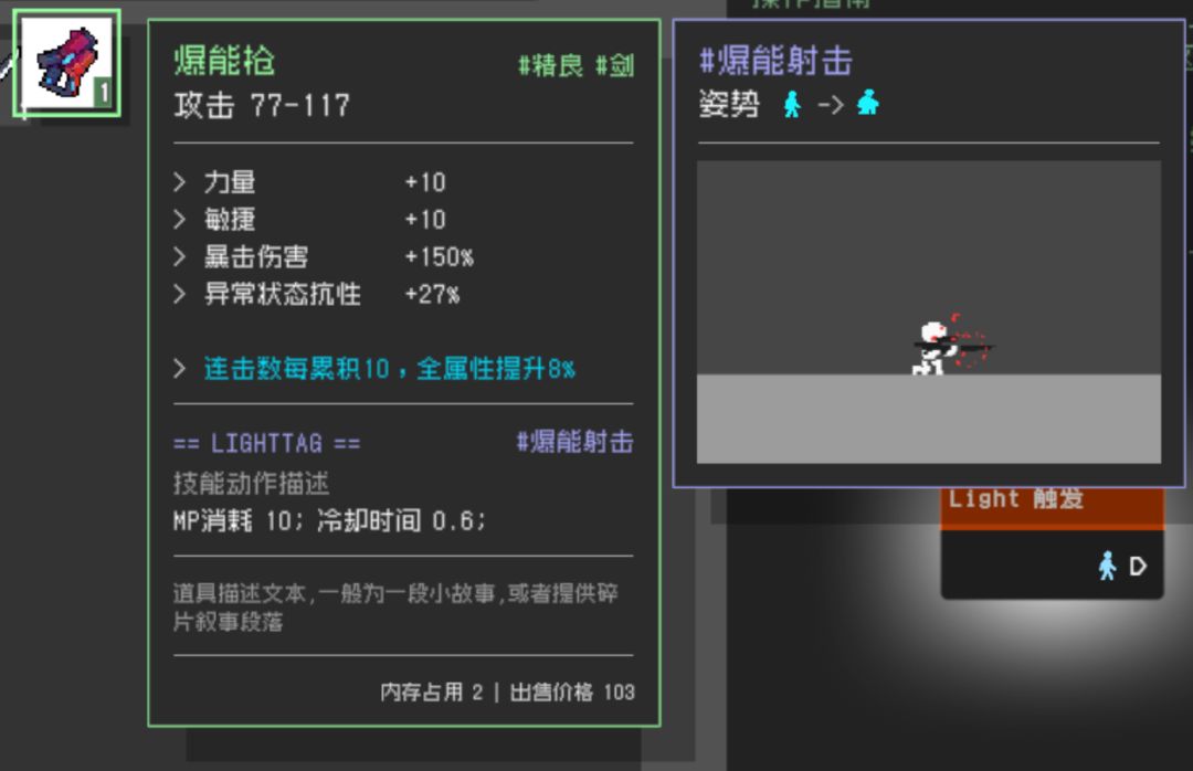 作为一款横板像素动作游戏,如何搭配自己的武器技能自然是重中之重。