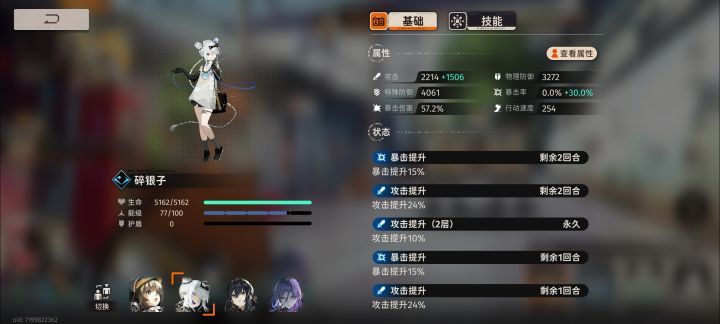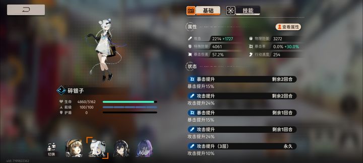 是我理解错了,起初我以为月白释放一次战技两回合buff,暴击直接就是40,但是我用朝颜测试后发现是只有新战技覆盖旧战技时暴击才能叠加,我用朝颜测试,朝颜4级战技只有15暴,第一回合打完,主c身上有两回合buff,按我理解来算应该是30暴,但上面只有15暴,第二回合挂buff打完,此时主c身上还是只有两回合buff,但暴击已经变成30了,也就是说,同一个buff是可以叠加的,但是只有新战技覆盖就战技的时候才行,月白战技两回合只能覆盖一次所以是40暴,4门朝颜战技3回合能覆盖两次所以满级战技是60暴