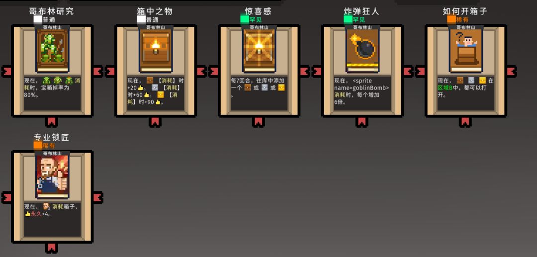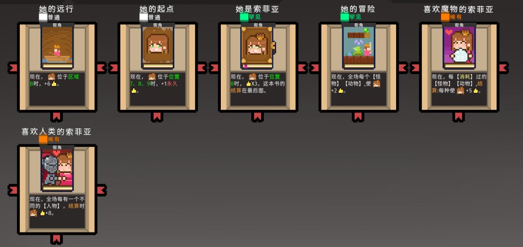 3.如下图,当你拿取了【普通】的书,下一次就有概率随机到该卡堆【罕见】的书;