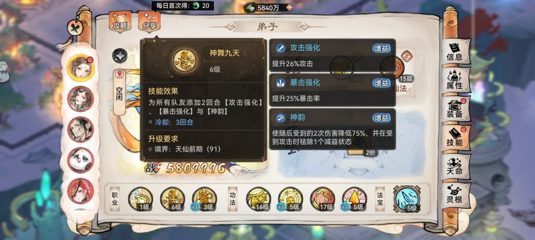在这里有一个小诀窍,各位道友应当先多试一下各种阵容搭配,将没什么用的弟子换下,尽量上能起到关键作用的弟子,甚至于高战副c可能都不如一个坦位弟子,这些都需要道友们根据个人情况进行抉择。