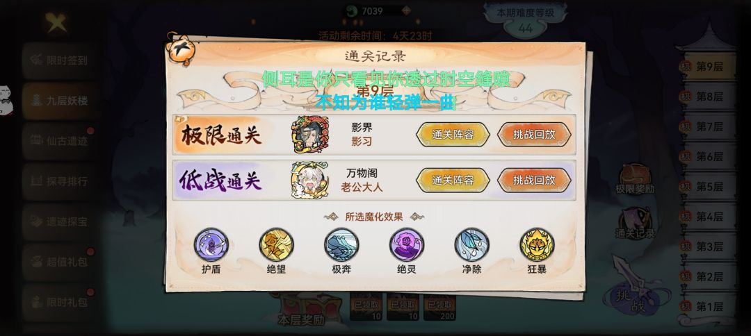 这好像是上一期妖塔的buff,笔者记得好像也通过并且录了视频,但上个月由于写其他攻略去了,就没有写这个,然后手机不小心清了内存,就删了......