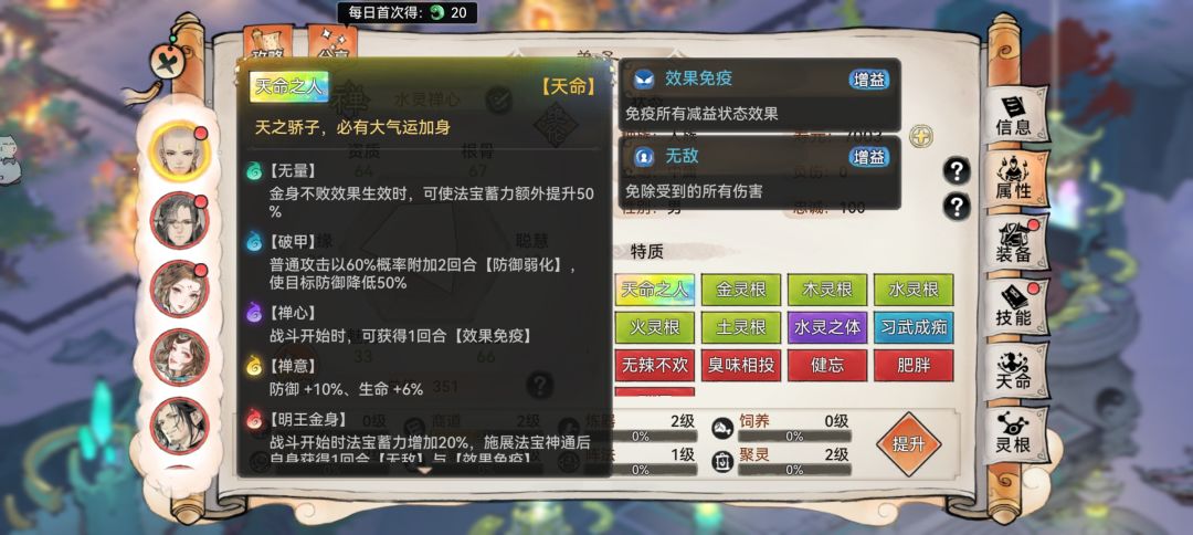 所以采取的是四保一阵容,禅至关重要,因为能锁血无敌,在死亡之前和法宝之后都能无敌,如果有无量的话,更是如虎添翼,可以连着无敌。