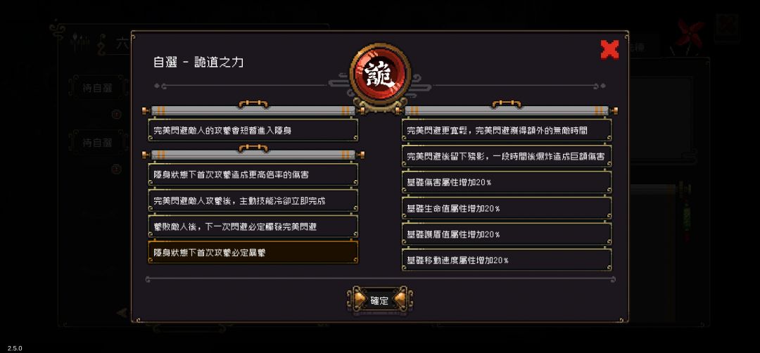 常规推荐,适合打极限伤害和修罗极限加伤害上的一击流(注操作不好且无隐身衣又无突刺戒指的情况boss战容错率低)