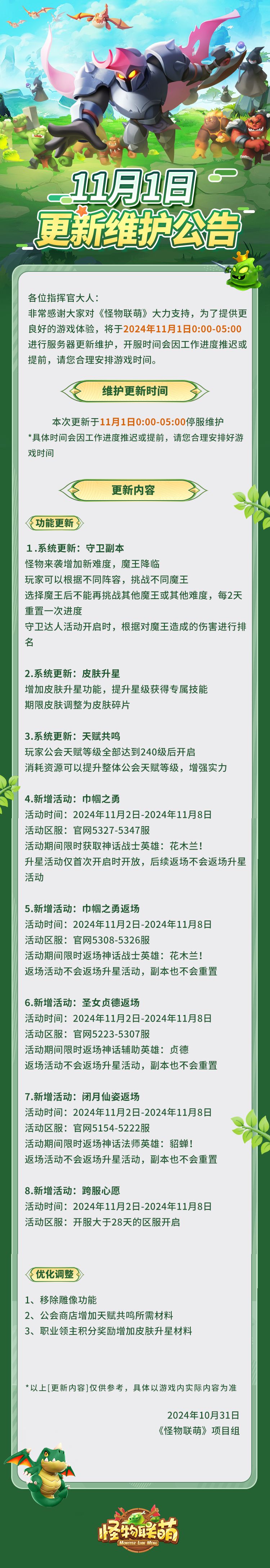 11月1日更新维护公告