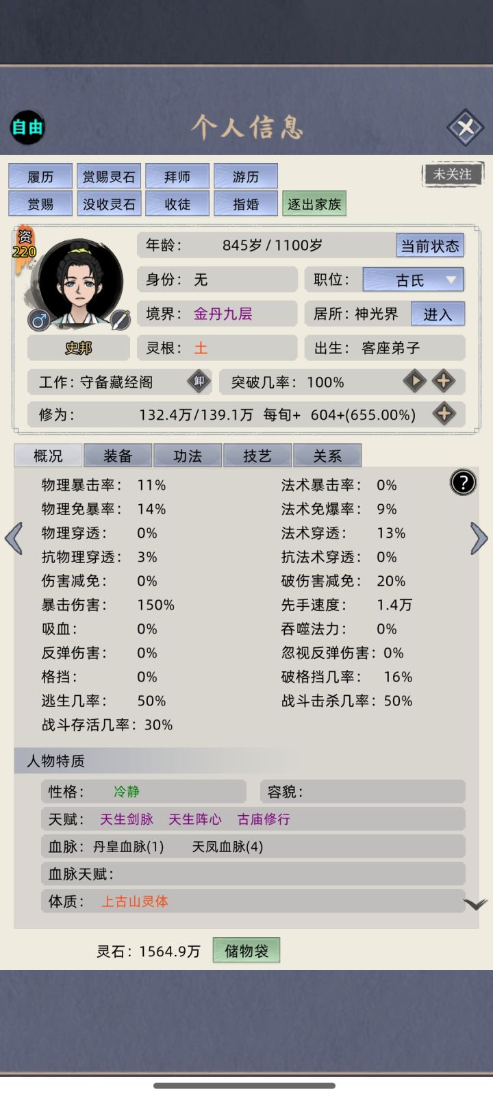 最终:6阶主修功法 混元万毒功(5阶) 四象神诀(6阶) 玉虚剑典(6阶) 大逆行伐天经(6阶)自创功法(暴击+爆伤)(6~7阶)