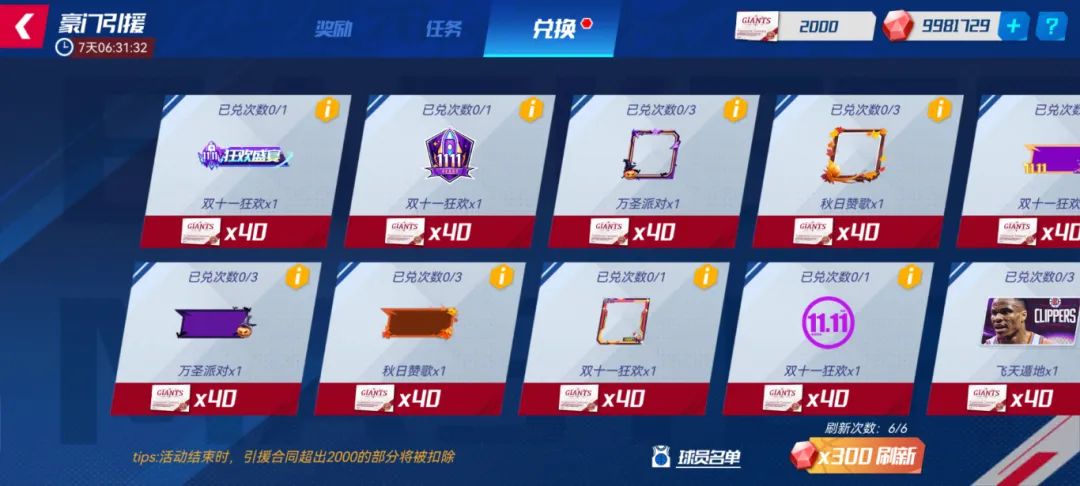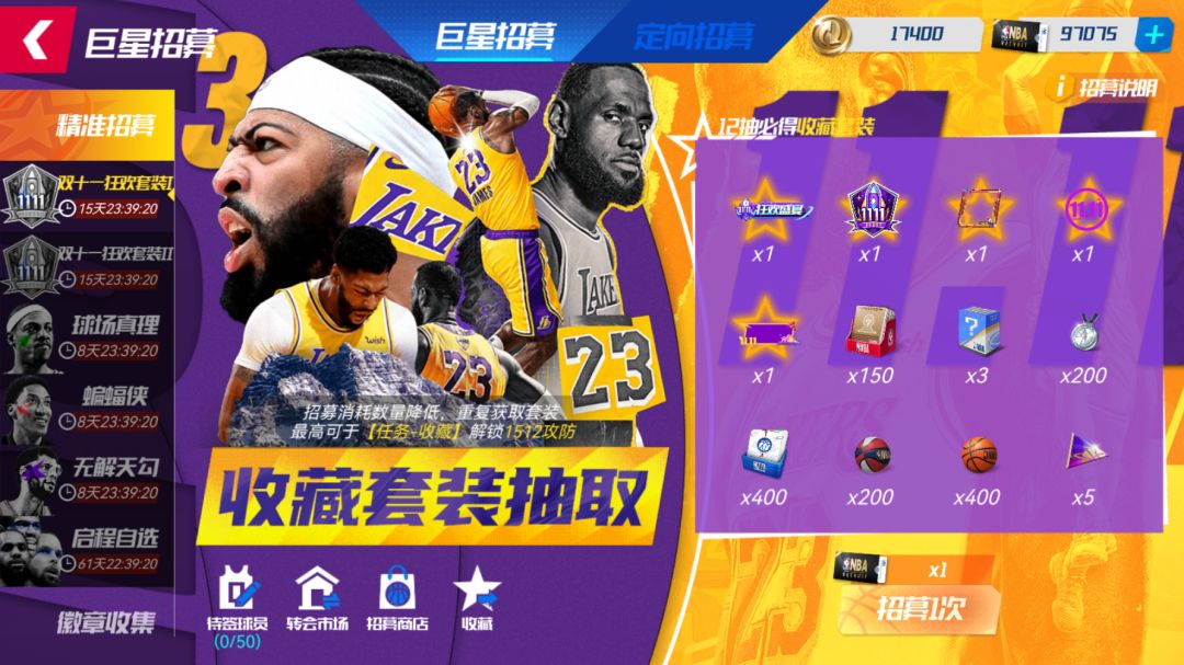 MVP卡池全员首次十连免费!至多抽取250次,成功将MVP骑士詹签约入队!130抽必出SS+限定球员,每30抽必出大师球员!