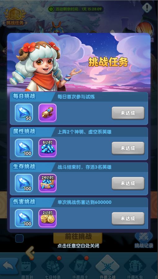 活动期间,每天可以通过完成许愿之战任务获得奖励。许愿之战一触即发,等待旅行者们挑战!
