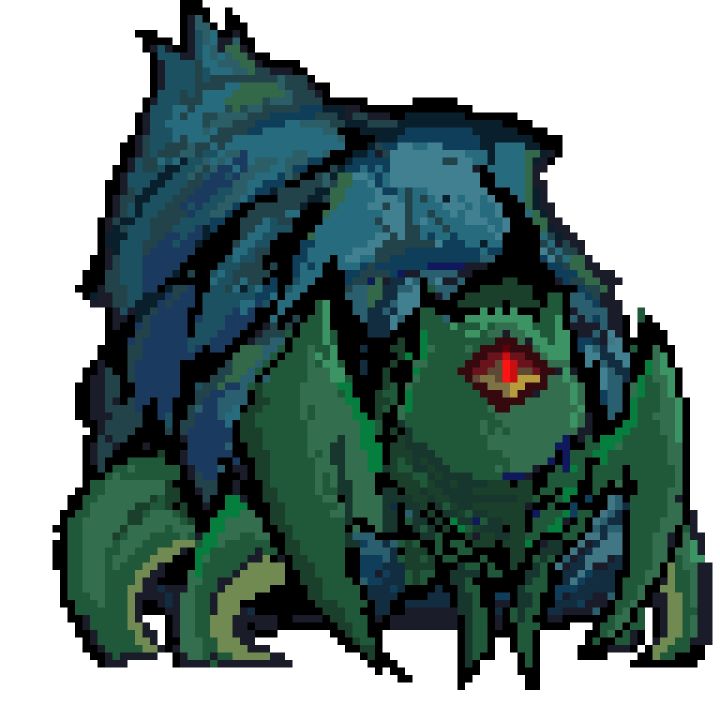 ●二阶段持续跟随玩家,并尝试撞向他们。会周期性的发射可以穿过物块的涡流弹幕。