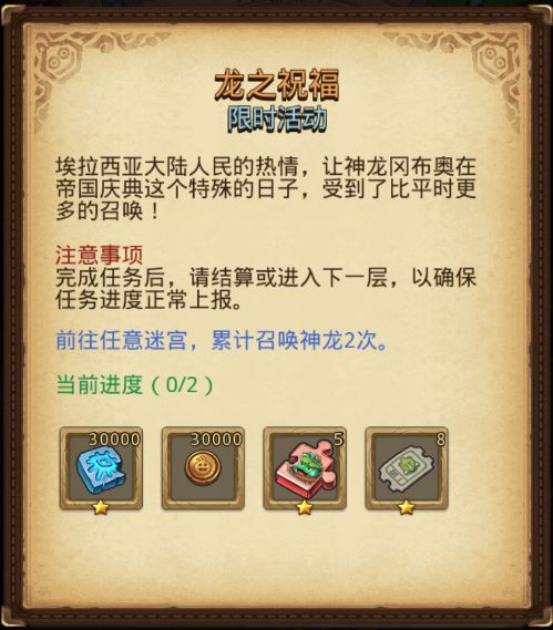 在任意迷宫累计召唤两次神龙即可拿奖励