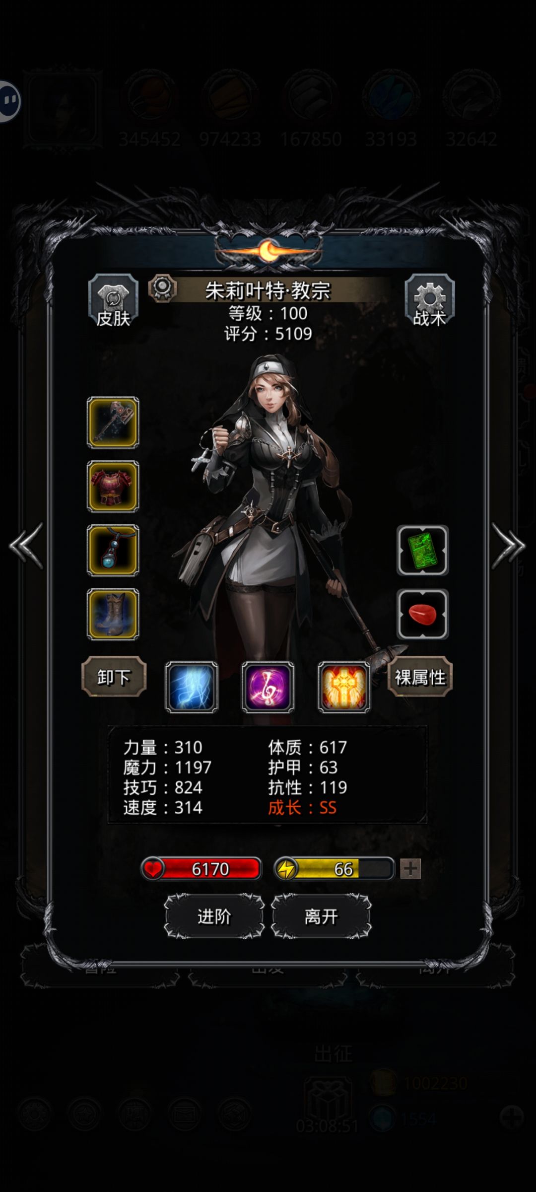 感谢大佬的建议,我去打了两个龙晶,今天终于过了。属性如上,龙猎换成刺客之类或者血法这种攻击速度快的可能效果更好。