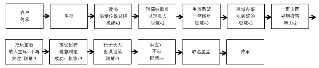 农户两条支线,一条种草,一条遭遇强盗。种草摆烂,达成代代相传。遭遇强盗,拼命逃离,达成乞讨大师;打不过就加入,弃明投暗,别送礼,获得传承。