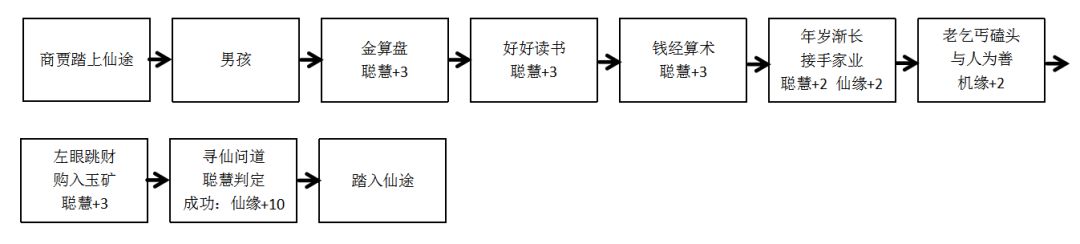 商贾主要两条支线。一条开局选金算盘,接手家业,寻仙问道可踏入仙途,放弃则分别完成客死他乡和寿终正寝。