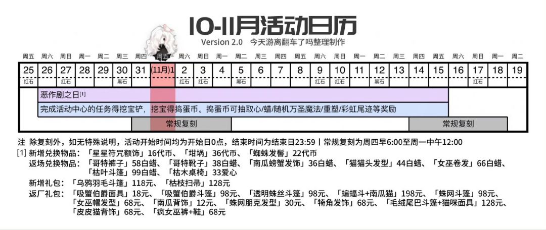 复刻时间:10.31 早6:00 - 11.4 午12:00