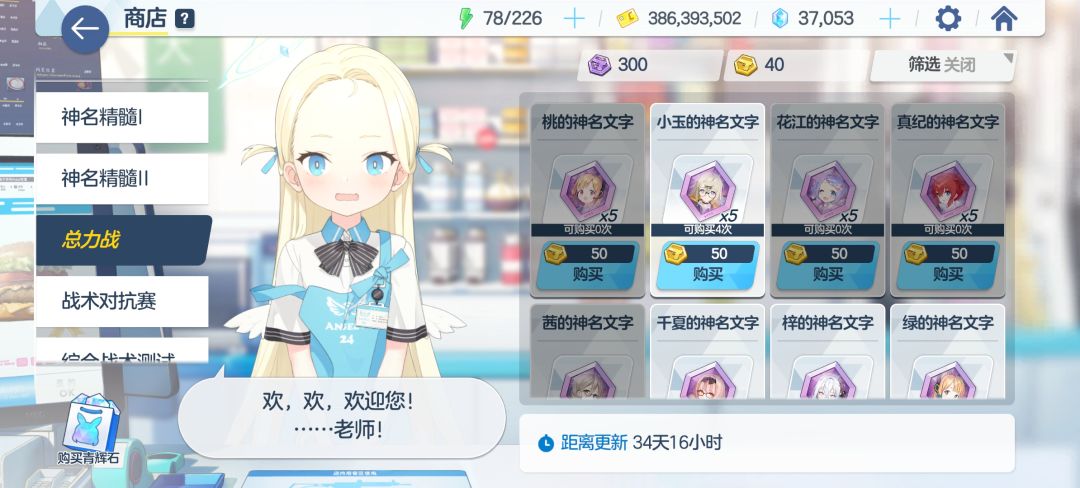 国服今天更新最终章以后可以看到,总力战商店的刷新倒计时变成了34天后