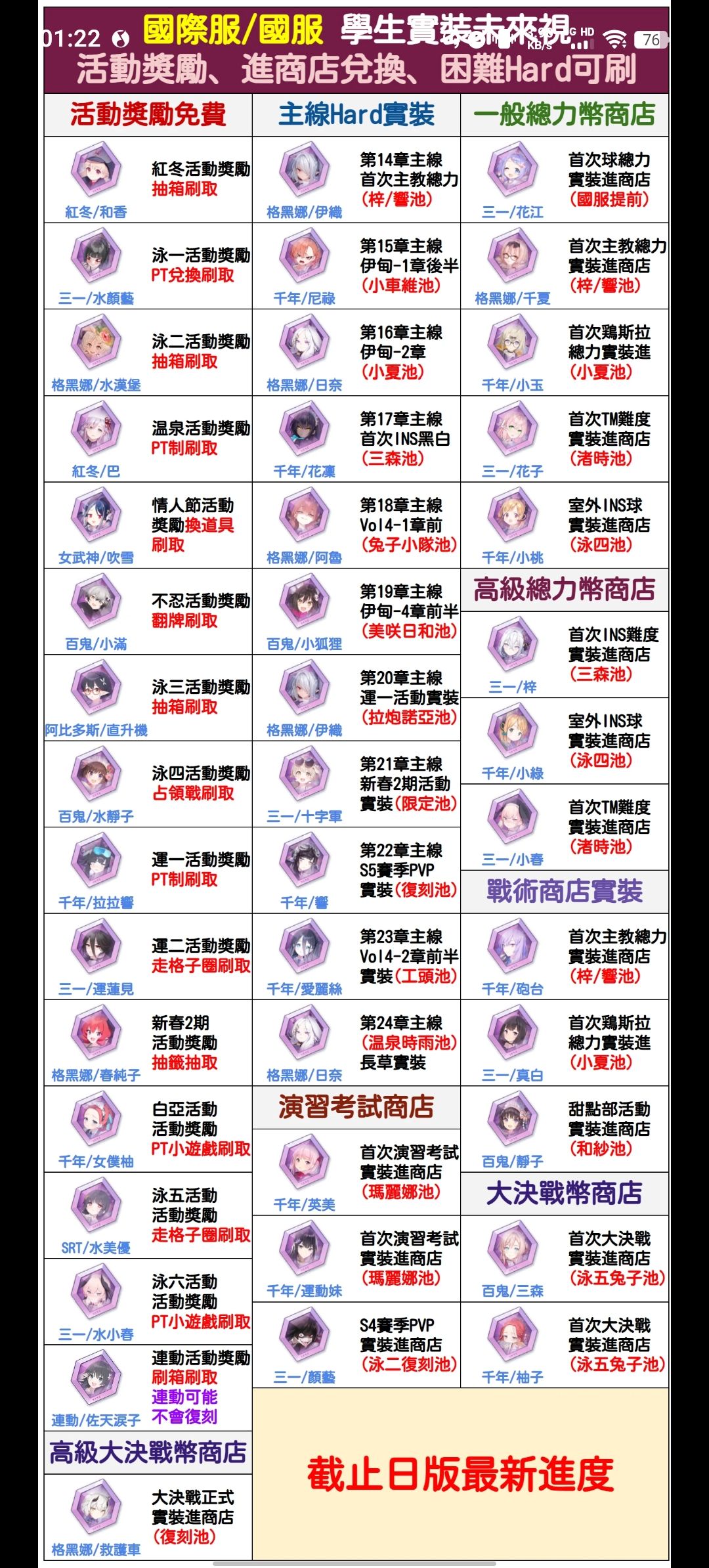 总力战商店更新:黄币更新花子碎片,紫币更新小春碎片