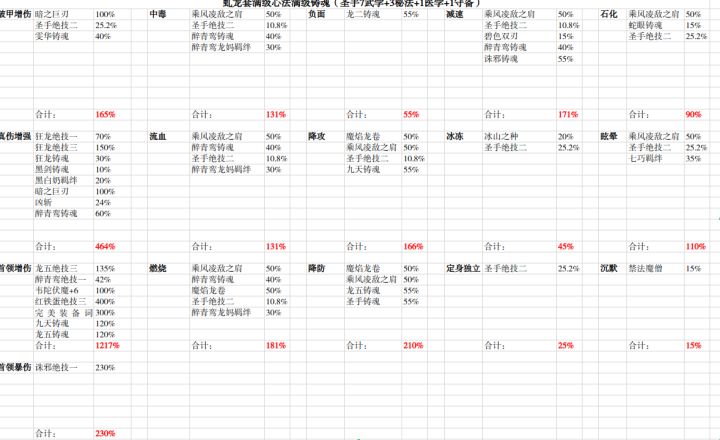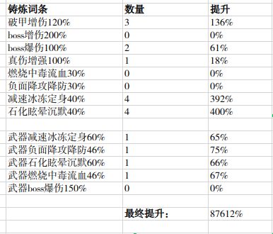 我是按照全稀有红三满铸炼+全红卡满铸炼+全身装备完美词条+全铸炼词条满属性来计算的,也就是所谓的单龙套毕业