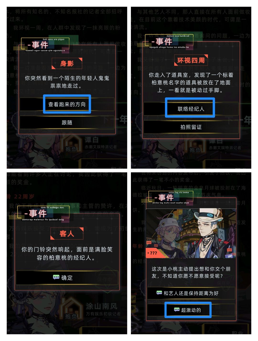 遇见:需要21岁及以上,记者职业,当前存档未遇见过。人物触发的时候事件会在点进职业页面的时候弹出来,选择[查看内容]-[接下任务]。