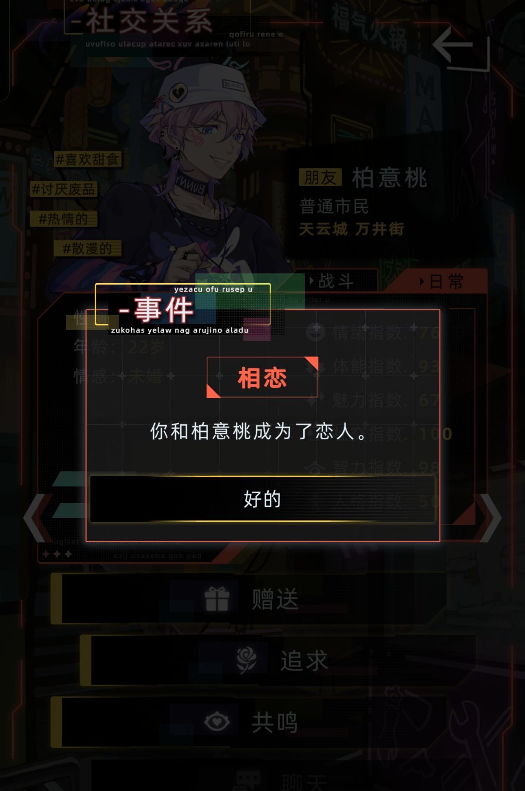 ⚠️双支线均可结婚,但是仅支线1可以达成挚友关系(自身为男性时触发柏意桃)。