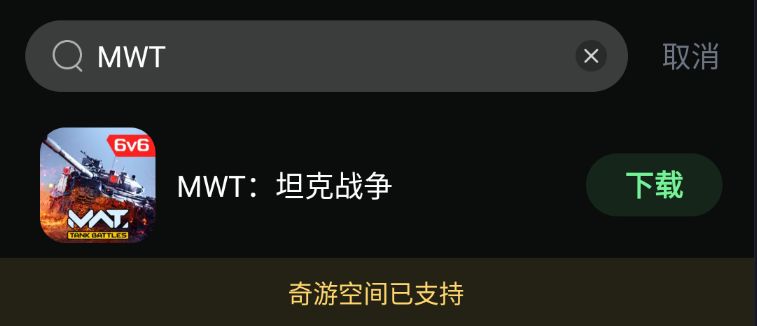 第三步:在奇游内搜索【MWT:坦克战争】即可下载游戏(如果提示游戏未安装,则说明奇游版本不对哦~)