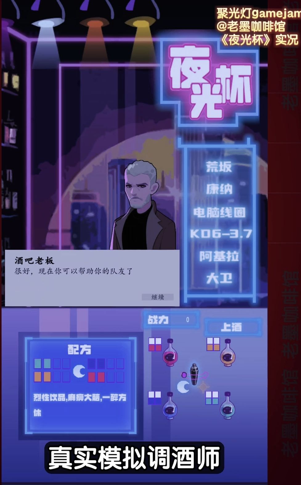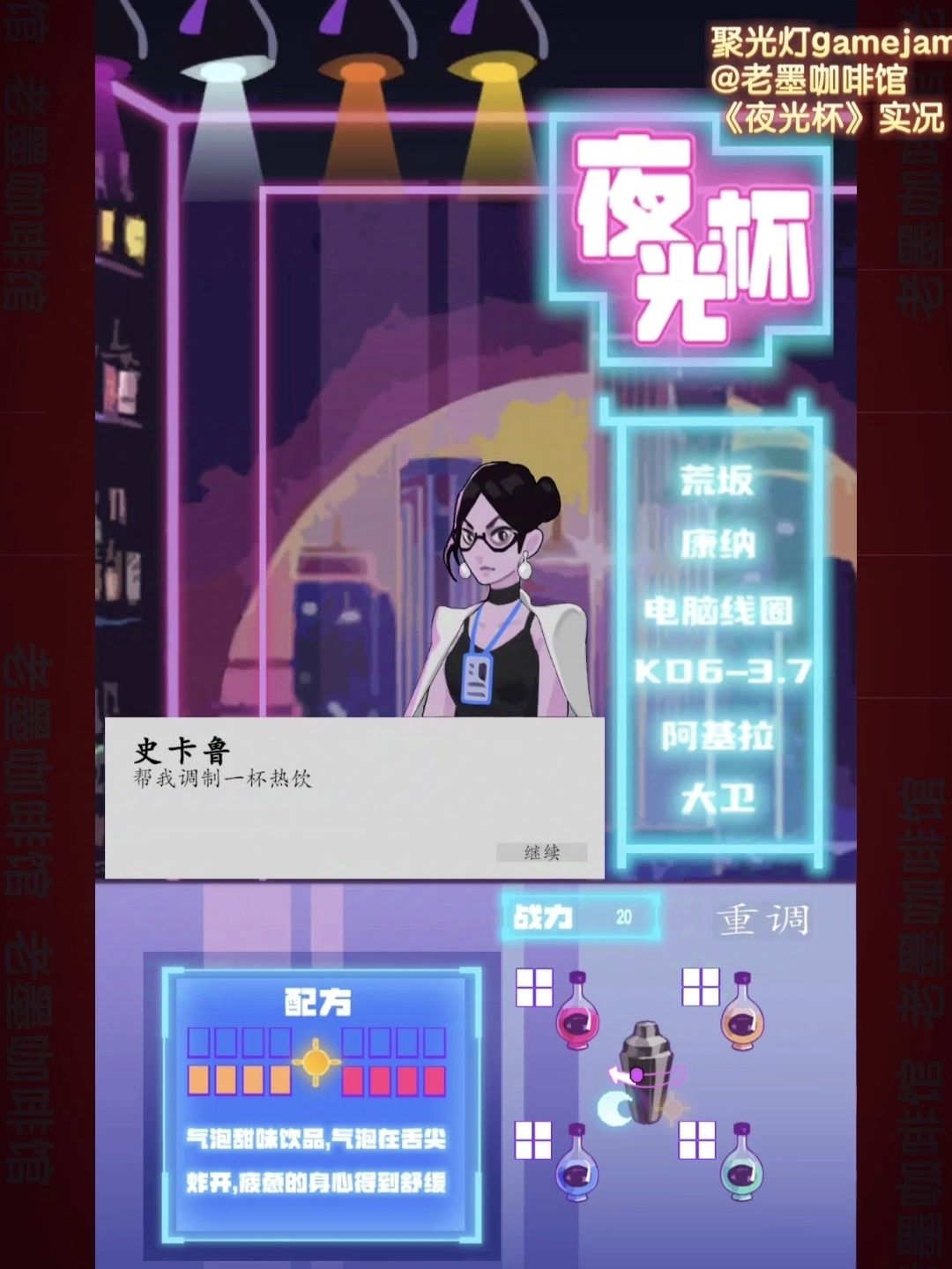 这是一款根据配方调酒的休闲游戏,主要玩法是🍸听取客人需求,在不同的环境光中调酒。