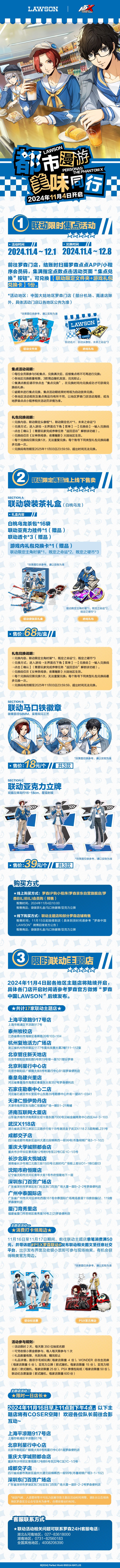 活动期间前往罗森门店,完成指定集点任务,可兑换【联动文件夹+游戏礼包兑换卡】1份。(*共3款,款式随机,先到先得,兑完即止)