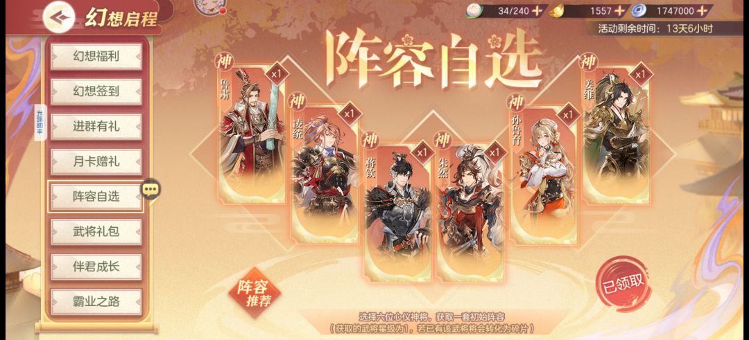 2.黄天秘境,推图推到最满,打不过换武将多试几次,女团活动选了魂关羽应该会好受一点,就是前几天容易被魂孙策仰卧起坐炸到越战。