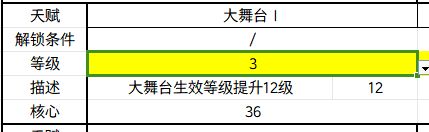 注意:大舞台默认1级,但是表格里没有加上,这个自己加一下吧(