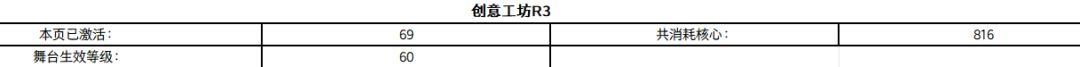 最上面两行是统计,包括激活点数,大舞台生效等级,总共消耗核心。
