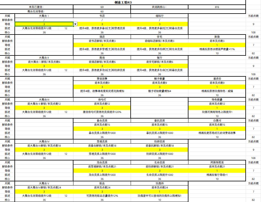 因为是excel表,所以没法模拟解锁条件的功能(也有可能是我太菜了),所以解锁条件也单独列出,自己注意下。