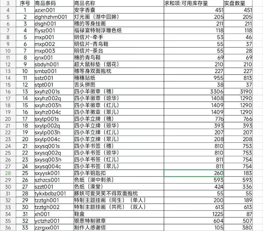 周边包括:安字香囊、灯光画(湖中回眸)、穗等身挂画、穗的青鸟鞋、穗的抱枕枕套、四小羊徽章、四小羊立牌……等等