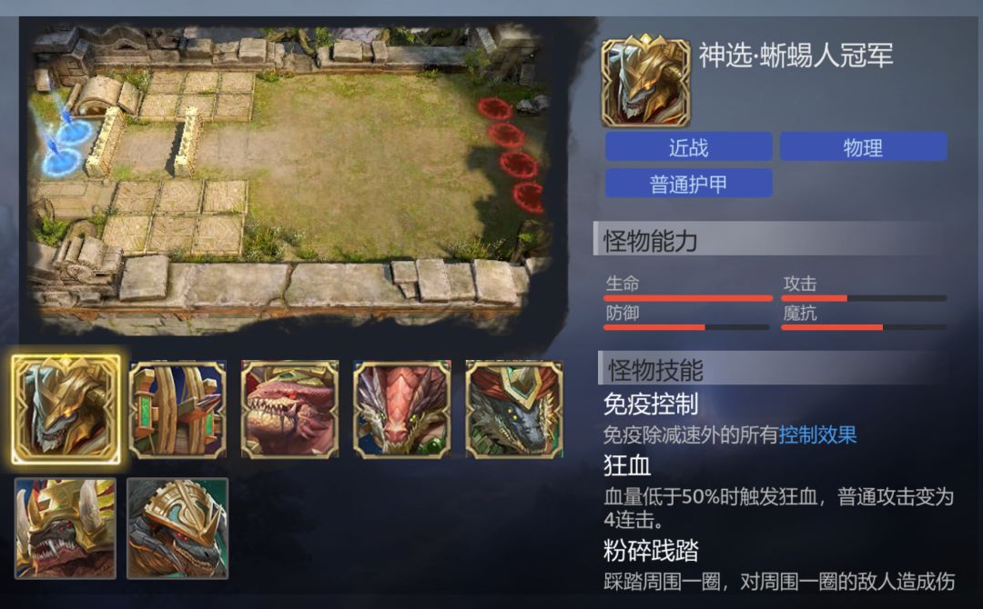 1、弩车会攻击城墙并对目标周围一圈的目标造成高额的伤害,因为会频繁发动攻击;除了弩车以外,后面一波刷出的蜥蜴人冠军可践踏周围敌人,因此城墙两侧几乎无法站人。