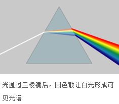 “光”的色散需要有能折射光的介质,介质折射率随光波频率或真空中的频率而变。当复色光在介质界面上折射时,介质对不同频率的光有不同的折射率,各色光因所形成的折射角不同而彼此分离。