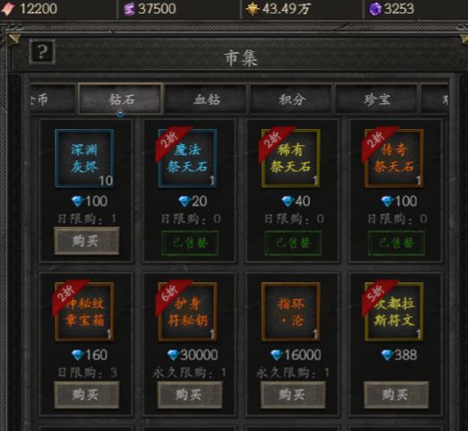 钻石商店:3个祭天石160钻
