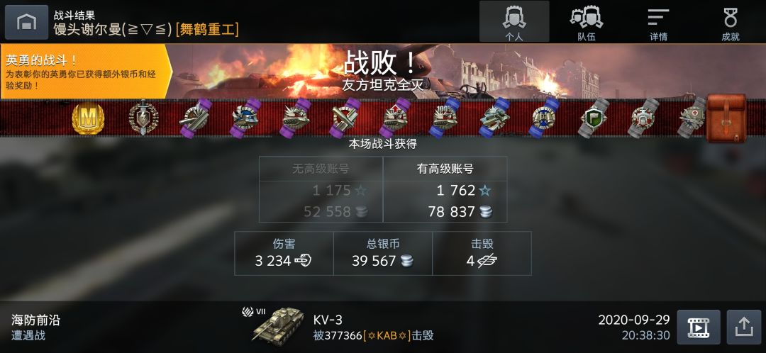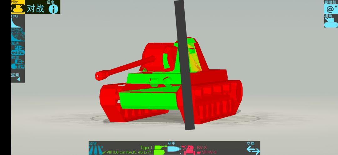 KV3的防护面对7级车还是良好,面对8级车车长需要发挥自己的侧面装甲来进行卖侧防御炮,如图为KV3卖侧来抵挡老虎203mm穿深的88炮攻击,后面就不用说了,能挡152高爆的后面就是好后面。
