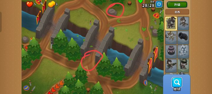 点23下图中上面圈起来的剑,开始后第一个气球到图中下方圈出岔路口处点第24下激活剑杀一个铅即可。点中的话剑会有一个抖动动画,点剑柄靠上位置更容易点中。