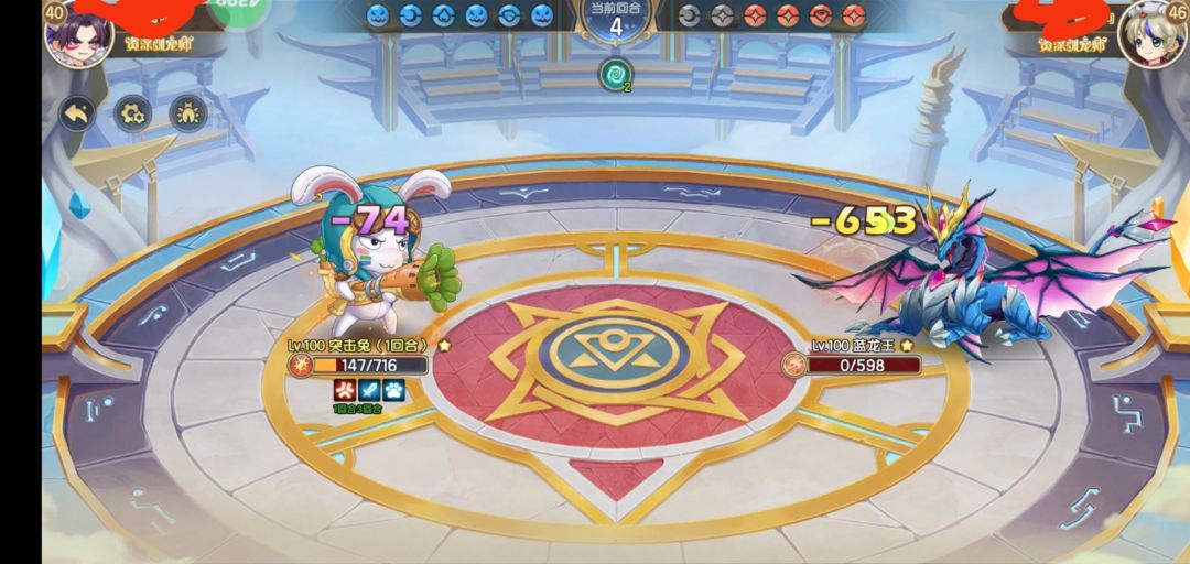 【比如说打挑衅的狮鹫。就可以直接上兔子进化启动收割了!狮鹫是100%打不过兔子得换人的。换人接一发平a,除了明王,别的基本都得倒,假如对面换的是明王,补一个当头一棒,对面明王也差不多没了】