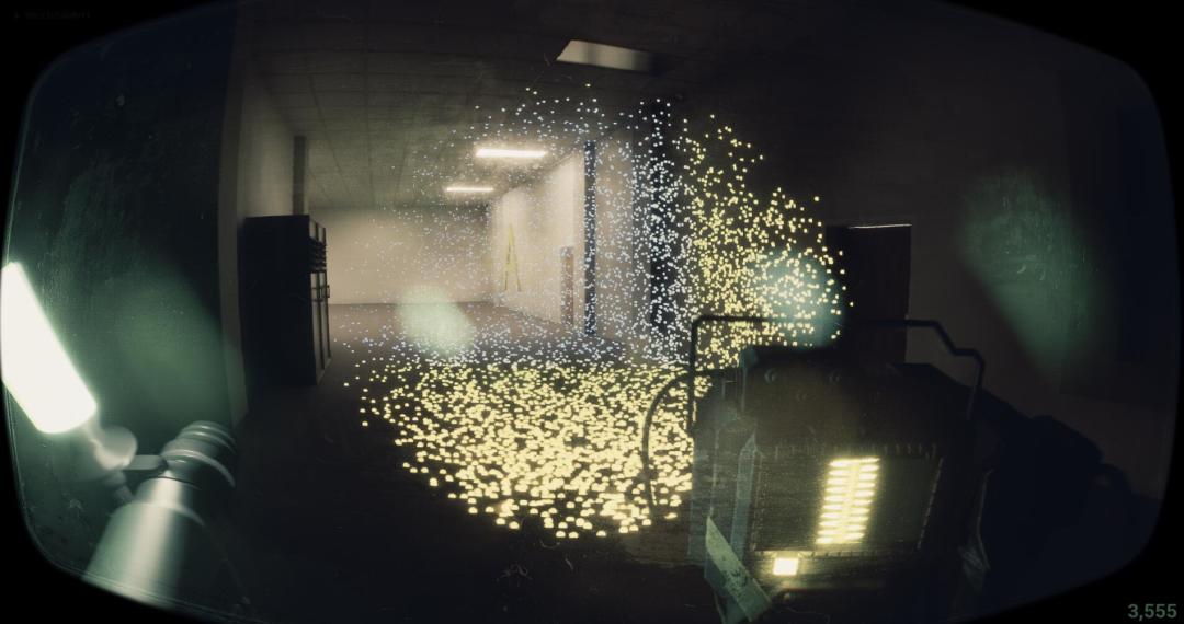 光子记号笔:一开始想让它和怪物做交互的激光笔,后来想到后室环境不会提供太多的地图记忆点,结合我们初次破题会中关于迷宫的讨论,我们设计了一个随意标记的光子记号笔。令人愉悦的标记体验,即使不考虑它实用的标记作用,单纯用来写写画画就非常愉悦。(顺便一提它的模型是一个焊接工具的把手,我们把它反着拿并做了发光处理。机智。)